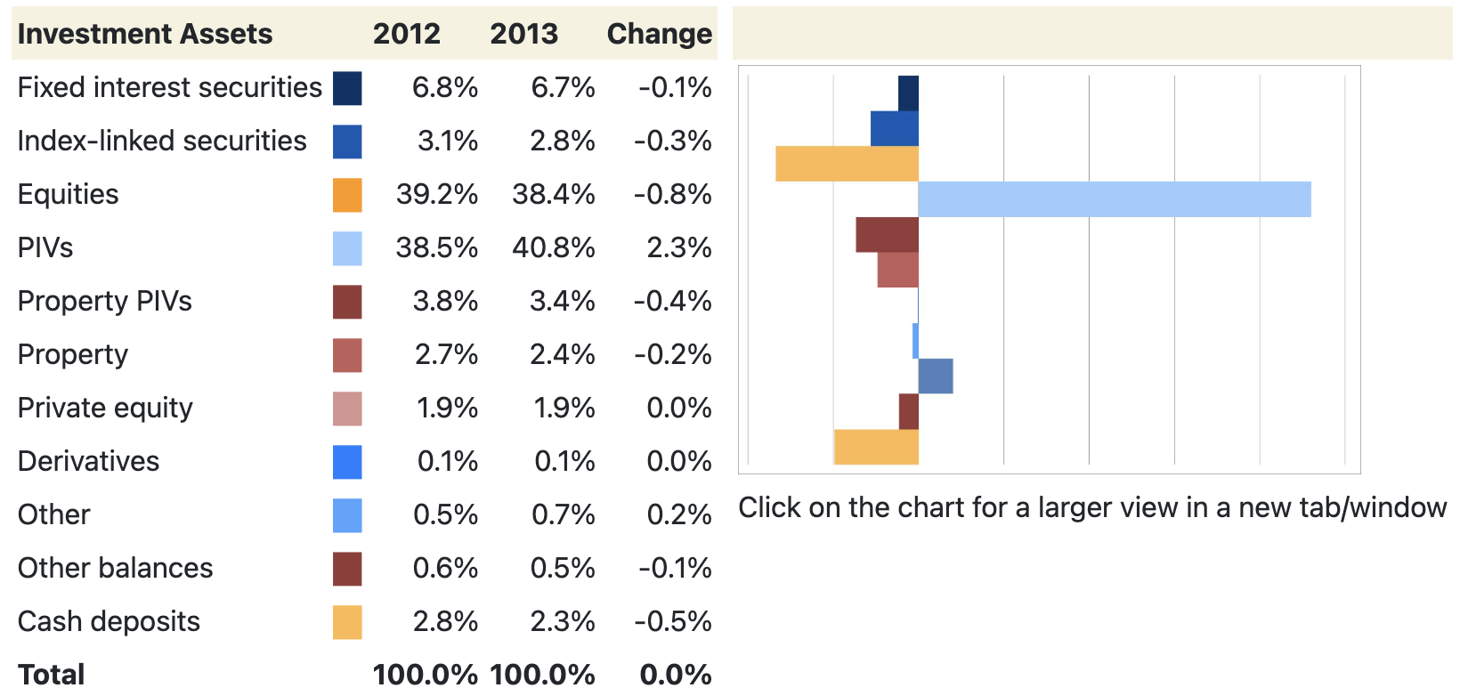 Change in allocation chart based on aggregated Net Asset Statements year to 31 March 2013