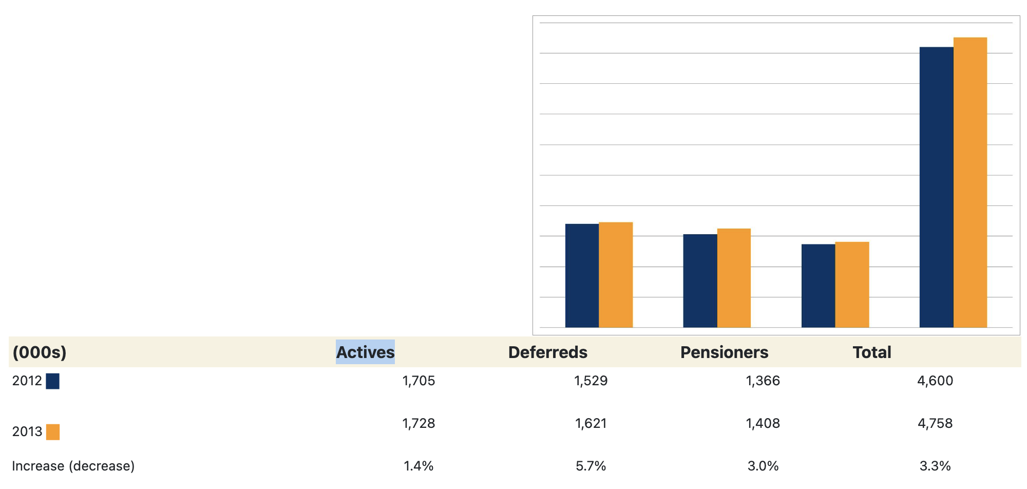 These figures may differ from employers listed in actuarial valuation reports, as inactive employers with no active or deferred pensioner members may or may not be included.