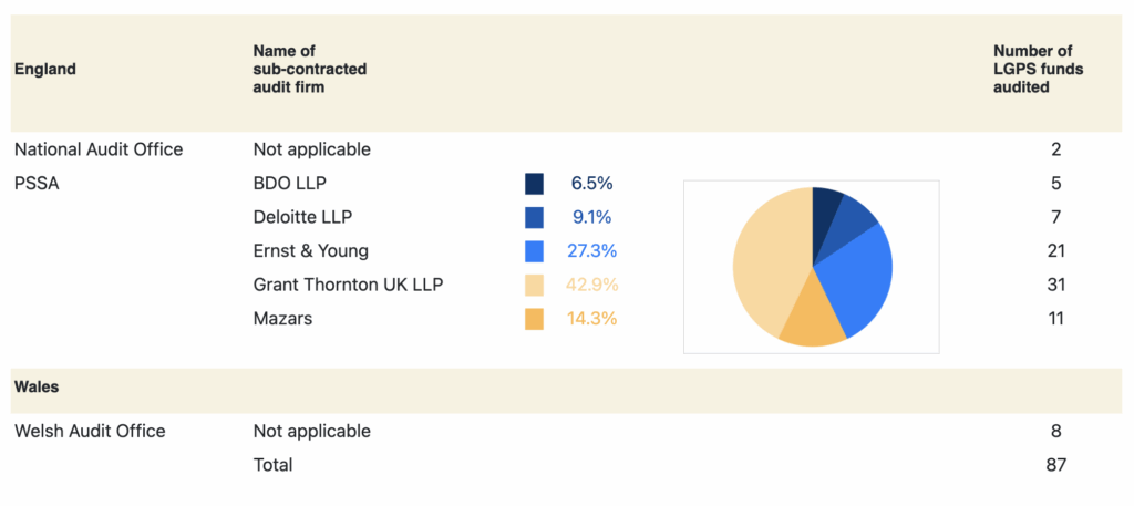 Each LGPS funds’ financial accounts are audited separately from each Local Authority financial accounts. They are then consolidated into Local Authority financial accounts and ultimately into the financial accounts of DLUHC and HM Treasury as part of the Whole of Government Accounts (WGA).