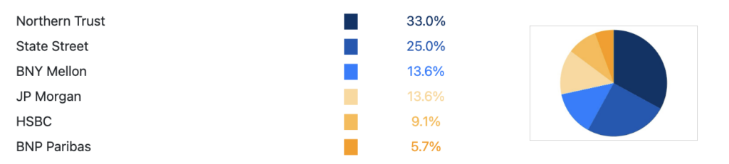 Asset custody* – BNY Mellon, BNP Paribas, HSBC, JP Morgan, Northern Trust and State Street.