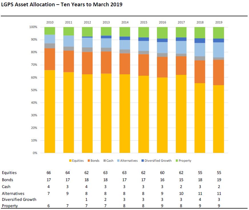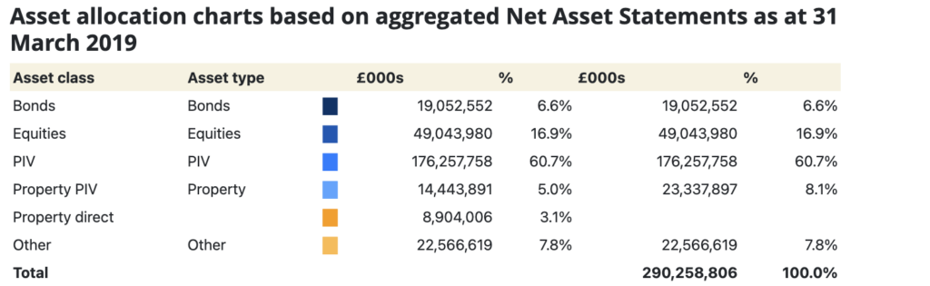 There were however a number of changes beneath that which took place during the year. These included a move into ‘green’ investments across a range of funds, a continued investment into enhanced index / smart beta investments including low volatility and an increase in the level of passive equity investment. Bond investment became more diverse as funds invested into multi-asset credit, private debt and secured property income funds. The move into pooled assets began in a significant way which meant fund manager changes were well up on average. Interestingly fund complexity continued to increase.